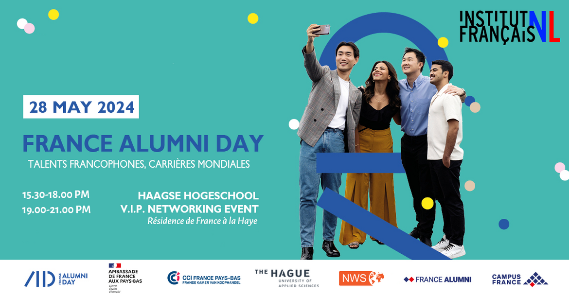 Au cours des échanges prévus pour l’après-midi, nous mettrons en avant la valeur ajoutée des études en France et de la maîtrise de la langue française, tant sur le plan personnel que professionnel. Dans une atmosphère conviviale, des représentants des secteurs public et privé français, ainsi que des représentants francophones aux Pays-Bas, auront l’occasion de présenter de nombreuses opportunités professionnelles francophones aux jeunes diplômés. Parallèlement, nous encouragerons les étudiants à considérer la France comme une destination d’études prometteuse. Notre objectif est de stimuler les relations franco-néerlandaises parmi les anciens élèves, les professionnels et les étudiants intéressés par la France.