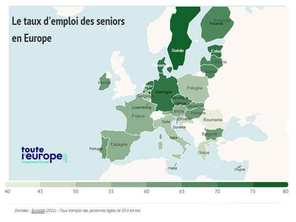 Source carte : (https://www.touteleurope.eu/economie-et-social/carte-le-taux-d-emploi-des-seniors-en-europe/)