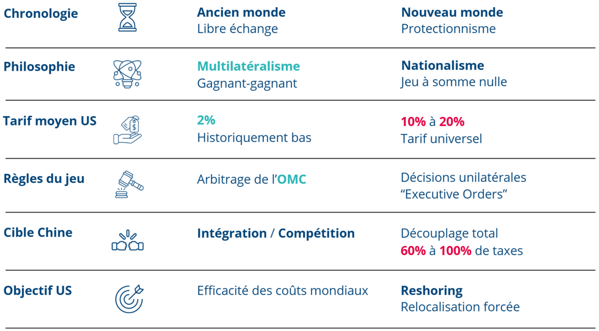 - L'Électrochoc "America First" : Dès l'été 2025, des tarifs douaniers de 10% à 20% ont frappé les importations aux USA, forçant une fragmentation durable du commerce mondial.