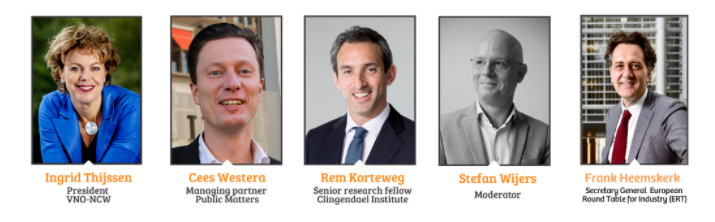 Next, the panel,Cees Westera, Managing Partner at Public Matters,Rem Korteweg, Senior Research Fellow at Clingendael andFrank Heemskerk Secretary General ERT, shared the following predictions and views on the current Dutch political landscape, its global impact and the corresponding challenges:
