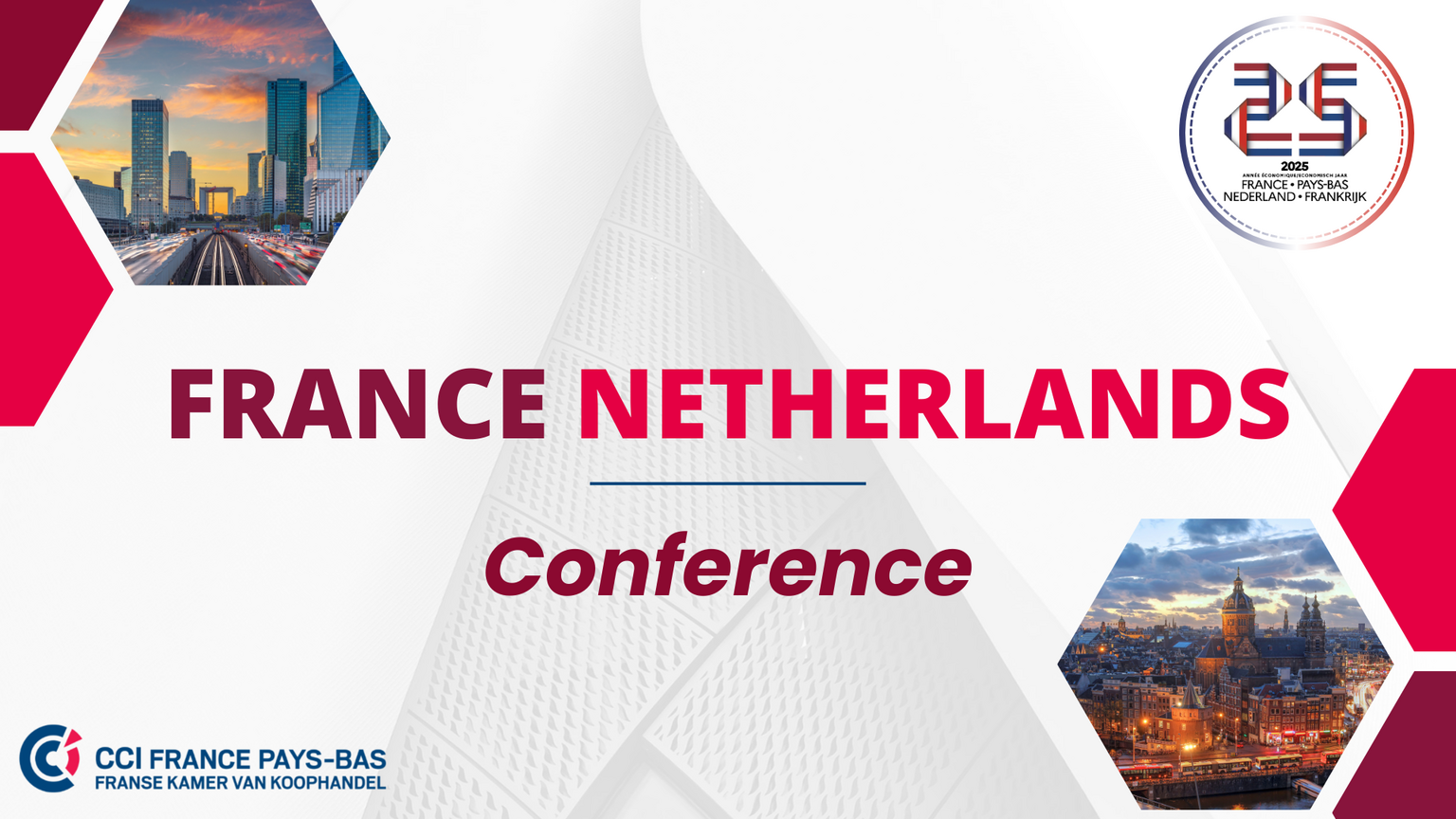 The French Chamber of Commerce in the Netherlands is pleased to invite you to a special conference on "The French-Dutch Savoir-Faire", organized as part of the Bilateral Economic Year 2025, highlighting the strong economic ties between France and the Netherlands.