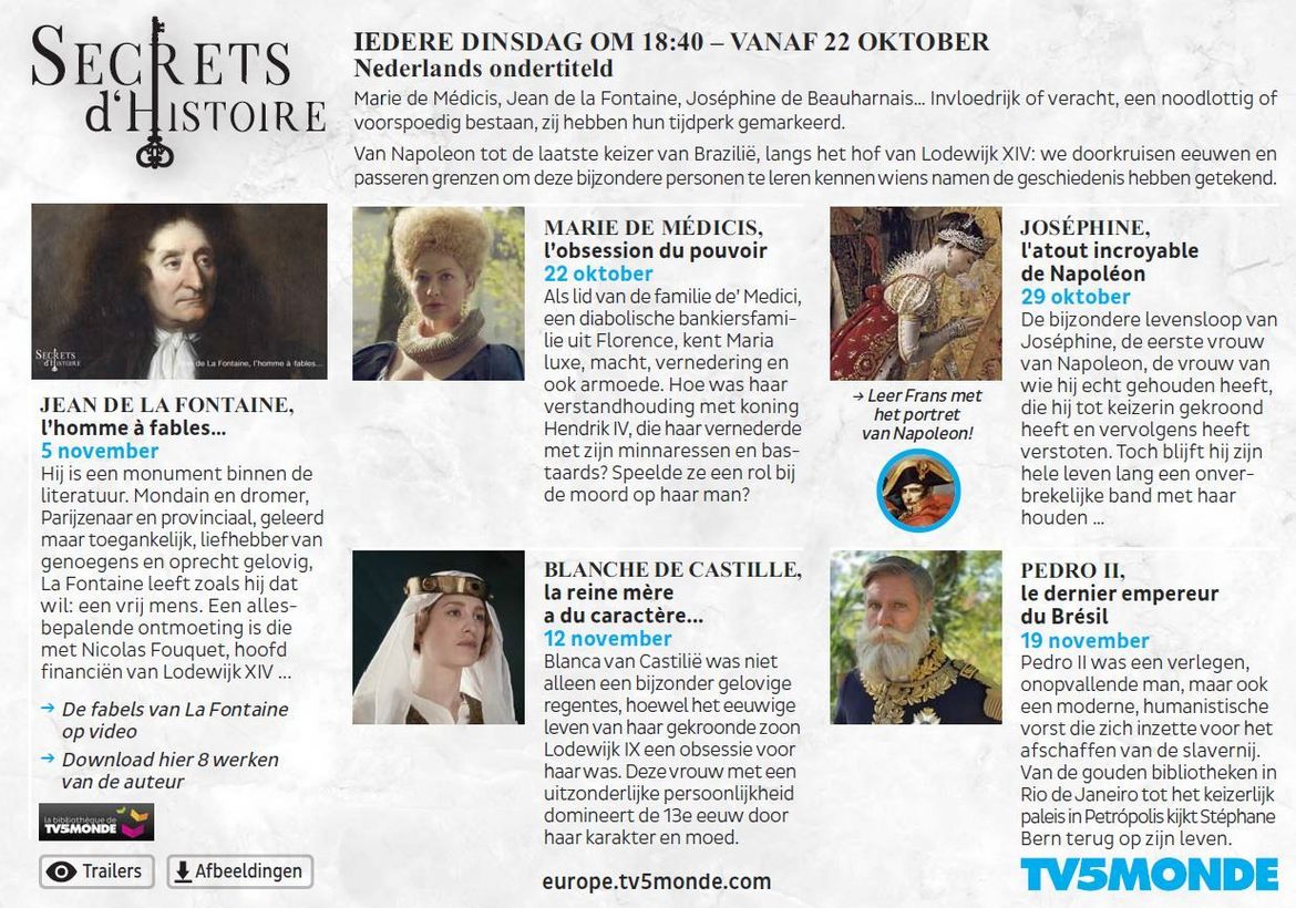 TV5 Monde - Secrets d'histoire, iedere dinsdag om 18:40