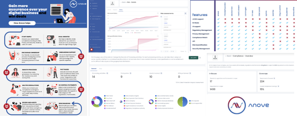 The Anove platform merges a Privacy Management System (PIMS), an Information Security Management System (ISMS), and a Governance, Risk, and Compliance (GRC) system into one user-friendly system. With the support of Anove Artificial Intelligence (AnoveAI), it is designed to let business owners quickly manage their cyber, privacy, and information risks without needing a large team. The platform can connect to 80+ APIs for automatically gathering evidence, making security, privacy, and compliance management even more efficient. Businesses owners can rely on a network of 150+ Security and Privacy experts, including on-demand virtual-CISO and DPO services.