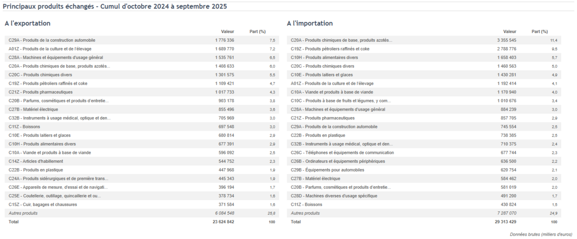 [2] Douanes françaises, ‘’Les chiffres du commerce extérieur", novembre 2025,
